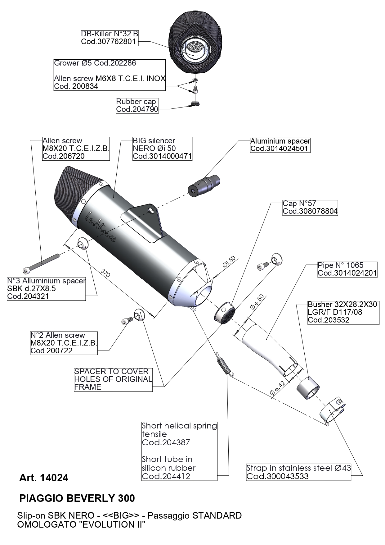 ΕΞΑΤΜΙΣΗ PIAGGIO BEVERLY 300 2010-16 LEOVINCE LV1 NERO INOX SLIP-ON